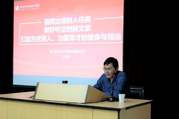 2019年10月16日下午3:30,在图书馆三号报告厅,校党委副书记王东升做了题为“围绕立德树人任务 做好守正创新文章 扛起为党育人、为国育才的使命与担当”的主题报告。机电工程学院全体党员师生参加了活动,校宣传部、学工、团委的相关同志出席。