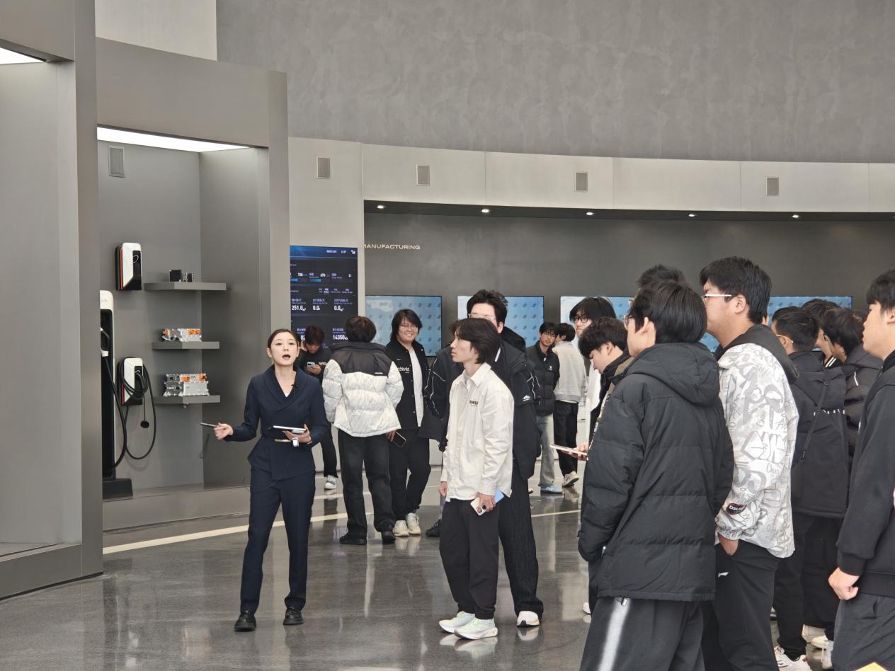 衢州极电新能源科技有限公司则向同学们展现了新能源产业的蓬勃生机。到达企业后,同学们依次参观了展厅、电池工厂、电驱工厂及宿舍样板区,并听取了企业宣讲。通过全景式参观,大家对新能源动力电池的安全性、续航能力提升技术有了直观认知。企业人力资源部门还特别组织了专题宣讲与青年员工访谈环节,邀请一线技术岗位的新进员工分享他们从校园到职场的转变经历,介绍企业对新人的培养机制与职业发展路径。真实的成长故事与贴近学生实际的建议,引发了同学们的浓厚兴趣,也让大家对未来职业规划有了更加清晰的认识。
