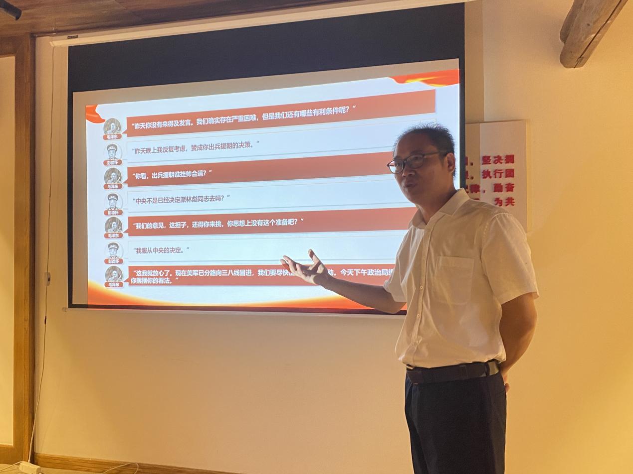 宣誓结束后,衢州职业技术学院党委委员、宣传部部长孔庆红同志为在座党员讲了一堂生动的党课,带大家领略了“从跨过鸭绿江,看名族复兴”的党史故事,了解中华民族伟大复兴历史进程的大跨越 ,引导大家学史明理、学史增信、学史崇德、学史力行,进一步激发党员的内在动力。他说,今年正是中国共产党建党100周年,因此组织到纪念馆参观,就是要表达对长眠于仙霞岭下无数革命先烈的深切怀念,学习革命先辈“革命理想高于天”的坚定信念、爱国爱民的高尚情怀。新的历史时期,要传承党和红军的优良传统,坚定理想信念,对于激发全体党员教师以饱满的热情投入到教育教学工作有着极为重要的意义。