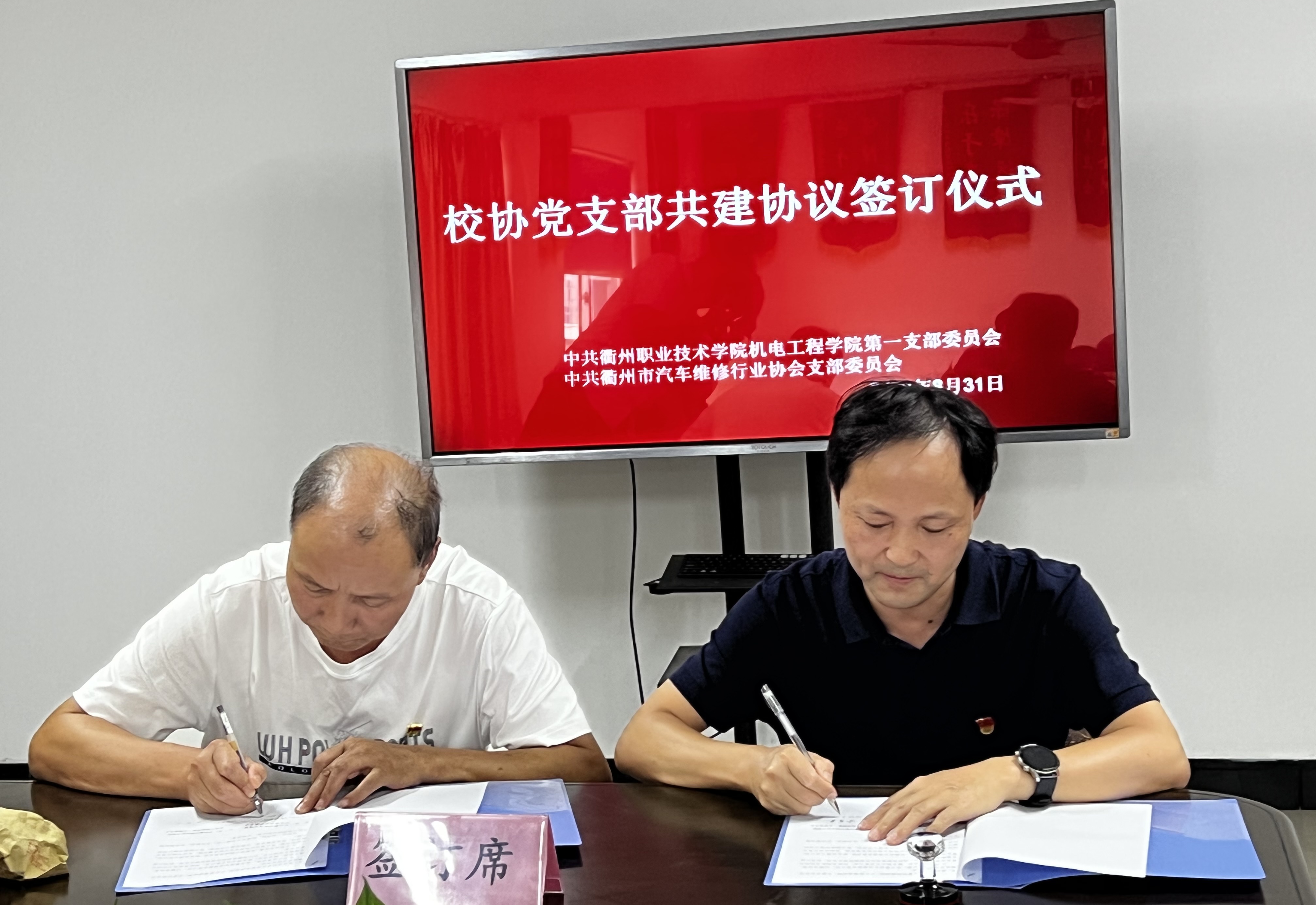 机电第一党支部与衢州市汽车维修行业协会党支部签订校协支部共建协议