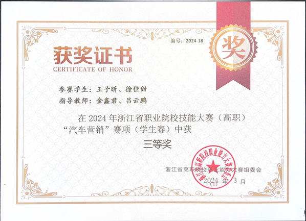 吕云鹏指导学生获2024年汽车营销技能竞赛三等奖